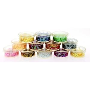 I really love this set of glitter. They are the perfect size for doing nail art - and the little containers are so packed with the stuff! I was very happy with the colors and shapes that I received - I'm actually wearing the silver stars on my nails right now. I don't have an issue with them popping off - stick them on with a little top-coat, then do layers of top-coat over the design until it's smooth. I also purchased the dotting tools from Mash and use them to help position the glitter. Very happy with my purchase.